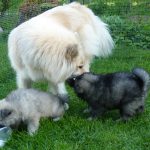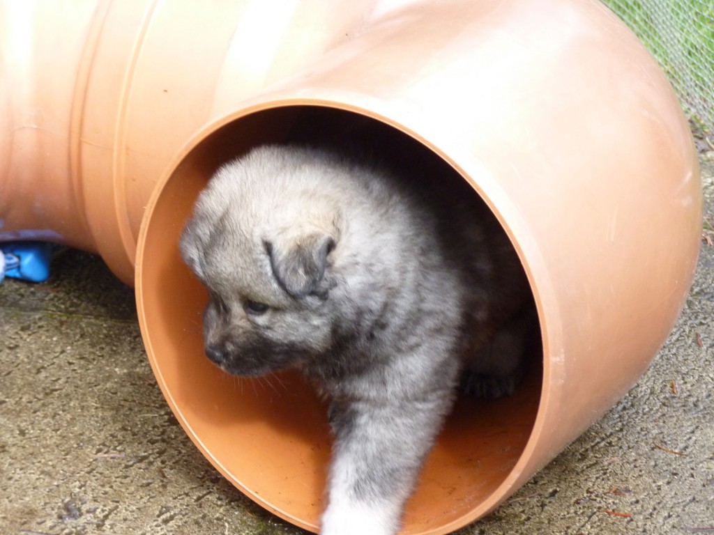 Mehr und mehr entfalten diese Fünf ihren ganzen Charme. Sie toben und hüpfen, suchen sich Spielzeug und schleppen es zu den Lieblingsplätzen, entdecken mit ihrer Neugier jede kleine Ecke, kämpfen, aber nicht zu grob, kullern und sielen sich und kommen beim Rufen wie kleine Kanonenkugeln angeschossen mit freudig wedelnden Schwänzchen. Gefüttert wird jetzt meistens im Stehen und Futter gierig verschlungen. Bela spielt immer mehr mit den Kleinen und benimmt sich dabei selbst wie ein Welpe.