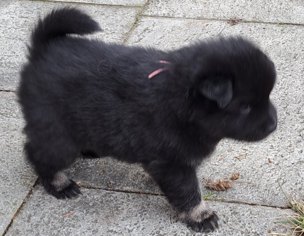 Die fünfte Woche beginnt mit der ekligen Wurmkur. Überlebt. Dann geht es erstmals an die frische Luft, ein milder Wintertag lädt dazu ein. Neugierig erkunden die Welpen die neue Umgebung, um sich dann doch drinnen noch sicherer zu fühlen. Am zweiten Tag spielen sie schon länger und fallen dann ins Schlafkoma. Im Laufe der Woche lernen sie die neue Freiheit lieben und toben mit lustigen Sprüngen durchs Gehege. Dabei bringt sich Bela als liebevolle Oma ein.